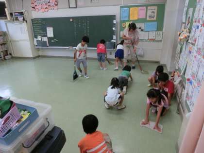 役割を分担し友達と協力しながら、担任とともに一生懸命取り組みました。初めは6年生にお手伝いをしてもらいながらの掃除も、自分たちだけで上手にできるようになった1年生。これからの活躍と成長が楽しみです