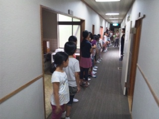 荷物を持ち、それぞれの部屋に入りました。早速、避難訓練を行い、避難経路の確認をしました。