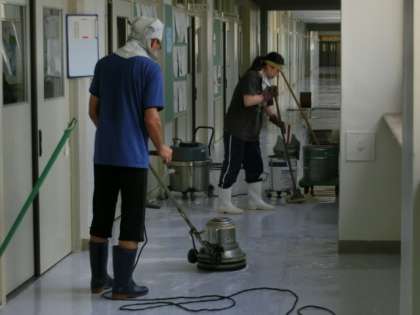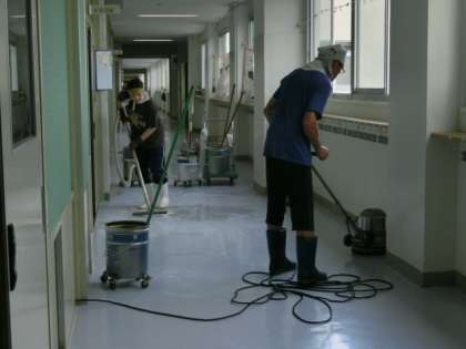 午後には、校舎内の廊下・流し・トイレ床面などのワックスがけ、夏草の草刈り、校舎内壁面の塗装などを計画的に行っています。