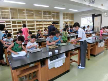 今日から始まった烏山小学校“サマースクール”に、上祖師谷中学校の生徒のみなさんが、ボランティア活動の一環として参加し、子どもたちの活動を支えてくださっています。また、明後日には、上祖師谷中学校を会場にお借りして、茶道教室・百人一首教室などを開催することになっています。