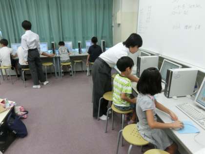 昨日に引き続き、上祖師谷中学校の生徒のみなさんがボランティア活動の一環でサマースクールに参加し、小学生の活動へのアドバイスや支援をしてくださいました。