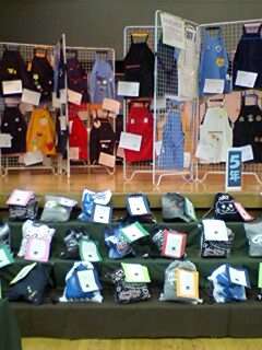 5年生のエプロン。6年生のナップザックです。アップリケや刺繍に工夫が見られます。
