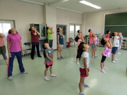 ダンス教室では、今までに経験したことがある子どもたちが、軽快なBGMに乗って大きく体を動かしたり、かっこよく踊ったりし、講師の先生の巧みで細かな言葉かけで素敵なパフォーマンスをつくり上げていました。