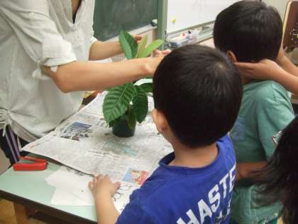 「ここはギザギザしているよ。」「根っこってこんな風になっているのは知らなかった。」など、普段見られない野菜の葉や根の様子を興味深く観察する子どもたちの様子が印象的でした。