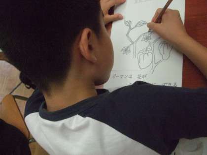 今日は「いろいろな野菜」の学習をしました。野菜の根や葉の観察をした後に、特徴をよく見て絵を描きました。
