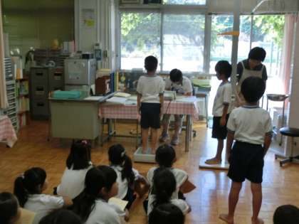 今日は、1年生・2年生・つくし学級の子どもたちが、保健室で測定を行いました。身長、次に体重の順で測定してもらっています。終わった子どもたちからは“大きくなった!”“増えた!”などの感想が聞かれました。明日は5・6年生、明後日は3・4年生の測定を行います。