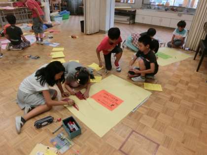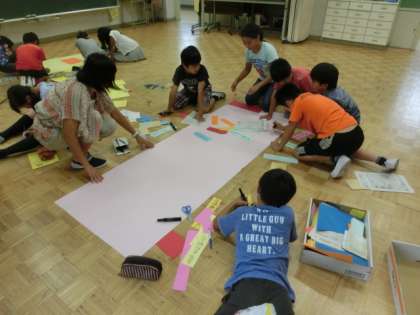 烏山小学校の委員会は、代表、集会、放送、図書、広報、飼育・栽培、音楽、保健・給食、運動、エコ委員会の10の委員会で構成されています。学校生活をよりよくするための活動に取り組んでいます。今日は一斉での活動時間ですが、委員会ごとに任された仕事や工夫した活動を、毎日続けています。とても積極的に責任をもって協力して取り組んでいるのが大きな特徴です。