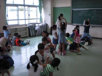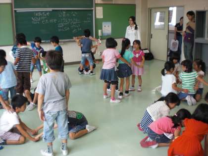 本日1・2時間目に、世田谷パブリックシアターのみなさんから、いろいろな身体表現を習いました。友達と協力して、楽しみながら「えんぴつ」や「いす」を身体で表現しました。