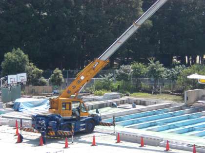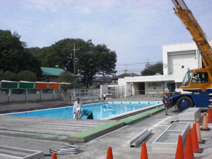 先週で水泳学習が終わり、本日より、プールの解体工事が始まりました。今日と明日の2日間で工事を行います。