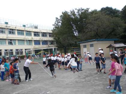 各学級が8の字跳びで、「5分間で何回跳べたか」・「続けて何回跳べたか」というめあてでがんばっています。真剣に、そして楽しんで練習しています。