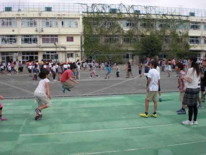 本日の中休み、長縄跳びの練習風景です。