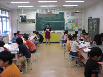 始めに青菜のゆで方や、「水からゆでる野菜」と、「湯からゆでる野菜」があることを確認しました。