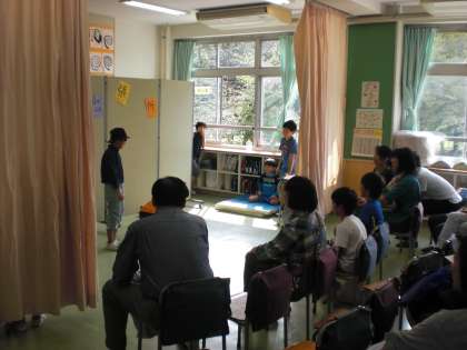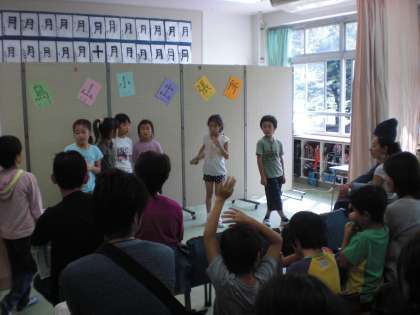 3年生の教室では、烏山区民センターのホールの催しのように、演奏、歌、クイズ、ものまね、マジック等、いろいろな演芸を披露していました。