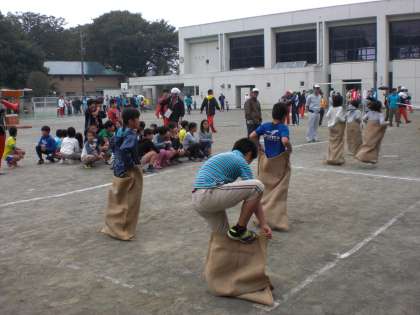 写真は、プログラム10番の「魚つり」、11番の「障害物競走」、12番の「嫁とり婿とり」の様子です。