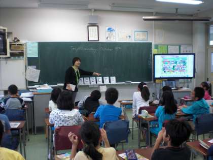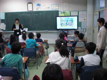 2校時に、担任と英語活動支援員の先生の授業がありました。
