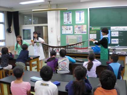本日、理研ビタミンの皆さんによる、「わかめ」を題材にした食育の授業を行いました。