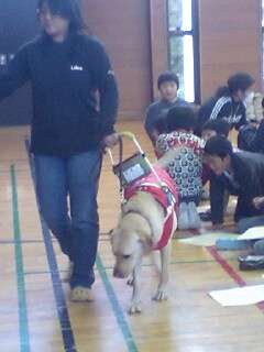 ユーザーの方に、実際に、えいと君と一緒に歩いていただきました。えいと君は、スムーズにユーザーの方をエスコートしながら、体育館を半周しました。