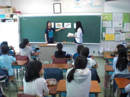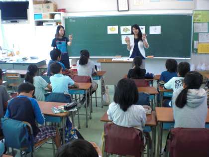 本日、2時間目に外国人講師の先生と、担任の英語活動がありました。