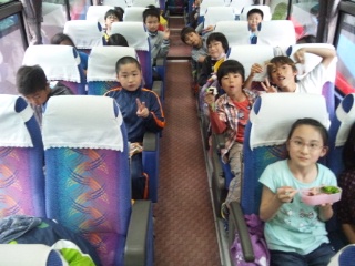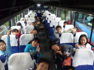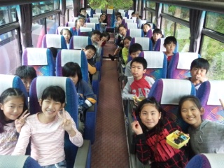 小雨のため、バスの中でのお弁当タイムとなりました。