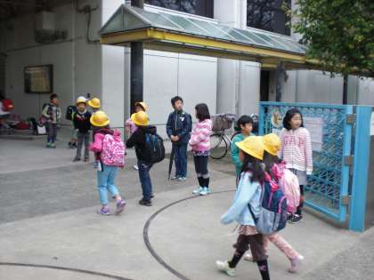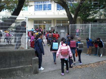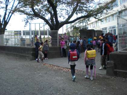 笑顔であいさつする子、一人ひとりにお辞儀をする子、知っている子が来るのを楽しみに待つ子など、和やかな雰囲気の中であいさつが交わされていました。
