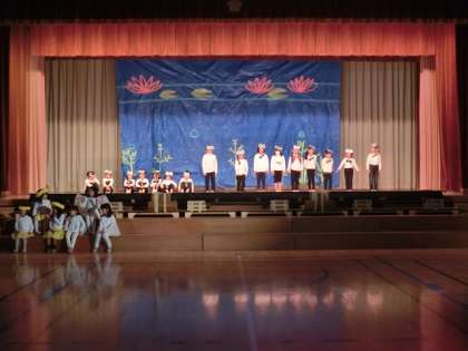 初めての学芸会を迎える1年生。台詞や歌詞を覚え、ステージやフロアでの動きを覚え、一生懸命練習に取り組んでいます。