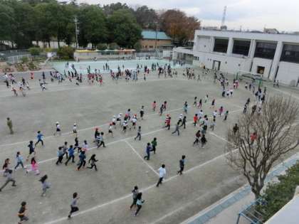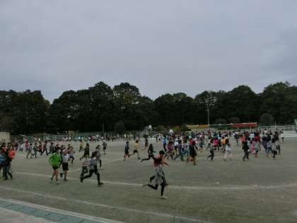 3週間にわたって取り組んだ持久走旬間も、今日の中休みが最後の練習時間となりました。2校時が終わり、校庭に集合し、各学年のコースで、各学級のスタート位置から一斉に走り出しました。軽快な音楽も流れ、あっという間に練習時間も終わりとなりました。