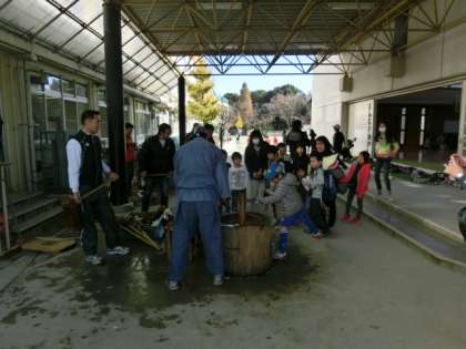 FATHERS烏山(烏山小学校おやじの会)の主催による“もちつき大会”が開かれています。