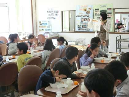 ランチルーム給食では、デザートとしてみかんが配られ、子どもたちは喜んで食べていました。