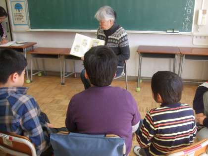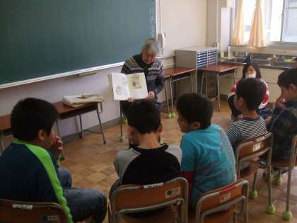 どの児童も集中して話を聞くことができ、時折笑い声も聞こえ、「もう一度読んで欲しい。」という声も聞こえてきました。