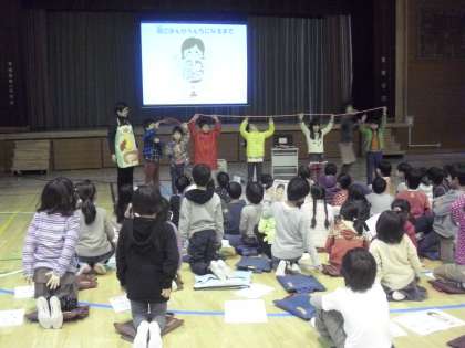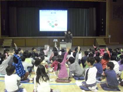 今日は、ゲストティーチャーをお招きして、「バナナうんちで元気な子!」の学習をしました。今朝、今日の学習について子どもたちに話をすると、「えー。」「恥ずかしいよ。」という声が出ました。