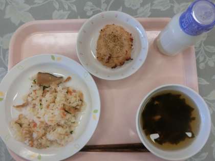 今日の献立は「ちらし寿司、松風焼き、すまし汁、牛乳」でした。