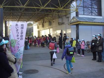 また、13日から16日まで烏山地域あいさつキャンペーンとして、PTAの方々や上祖師谷中学校の生徒のみなさんも参加してくださっています。