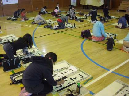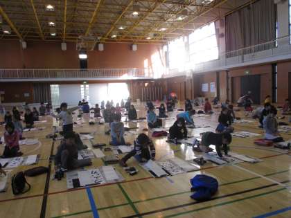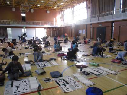 本日の1・2時間目に、席書会を体育館で行いました。3年生から、毛筆を使った書写の学習が始まり、席書会も初めての経験です。書き初め展に向けて、昨年から「つよい力」という字を練習してきました。「よ」の字が難しく、子どもたちはたくさん練習を重ねました。その集大成として、今日は一人ひとりが一生懸命取り組むことができました。 今週の15日(木)からの書き初め展をぜひ楽しみにしていてください。