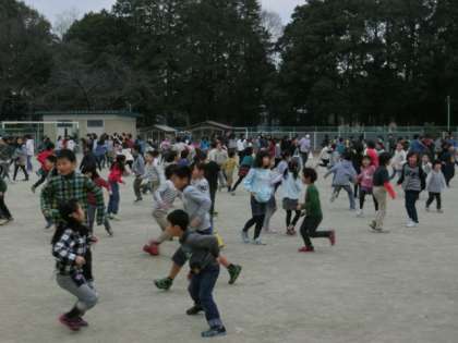 曇りの天気で寒さを感じる朝の校庭でしたが、元気よく走りまわり歓声が校庭に響き渡っていました。楽しいひとときを送ることができました。