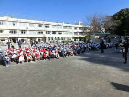 子どもたちは、落ち着いて“お・か・し・も”の約束を守り、短時間で全員の避難が完了しました。学校公開日でもあり、たくさんの方に参観していただきました。
