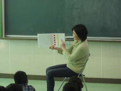 1/27 5年 お話泉の会の方々による読み聞かせの様子