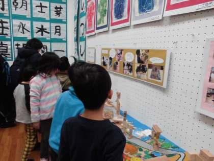 他の学校の小学生や中学生の作品を見て、子どもたちからは「とても上手でびっくりした。」「自分もこんな作品を作ってみたい。」などの声が聞こえました。