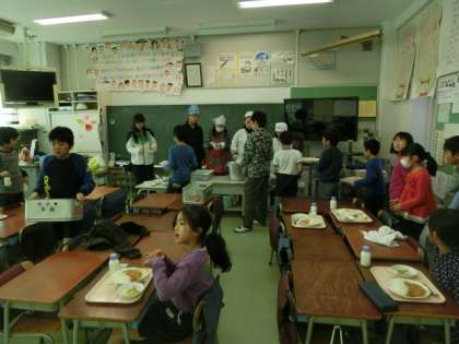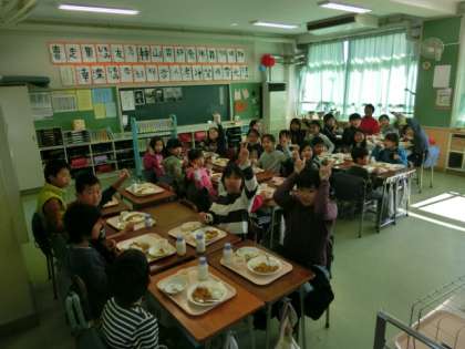 おいしい給食に、笑顔いっぱいの子どもたちでした。