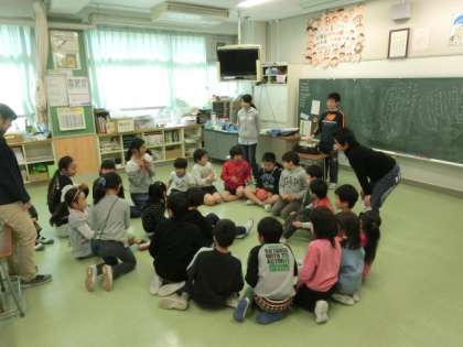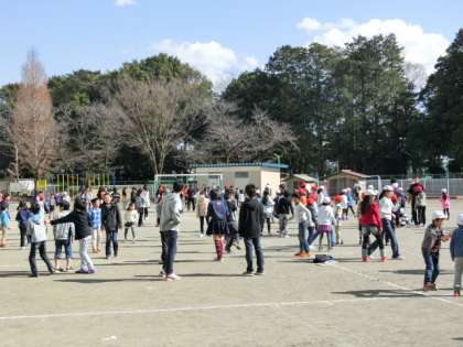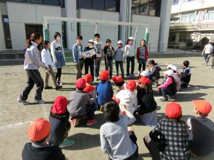 交流給食に続いて、校庭や教室を活動場所とした、縦割り班遊びの時間でした。6年生が中心となって計画した各班ごとの遊びを、思いっきり楽しんでいました。