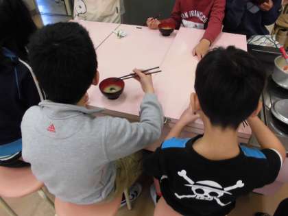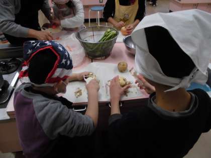 子どもたちからは、「包丁を上手に使うことができてよかった。」「とてもおいしくていっぱいおかわりした。」などの感想が聞けました。