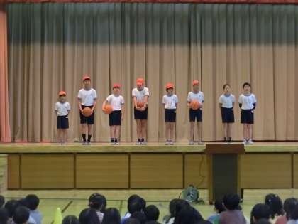 体育館で、クラブ発表集会が行われました。