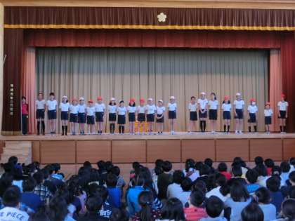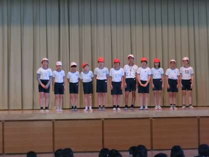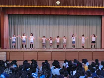 今日のクラブ発表集会では、体操クラブ、フットサル・ソフトボールクラブ、ダンスクラブのみなさんが、実技や寸劇、創作ダンスを通して、1年間の活動の様子やその成果を発表しました。