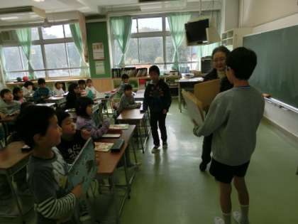 朝学習の後、学級活動に入る前に、6年生の代表委員が分担して全学級を訪れ、それぞれの学級での募金を担任の先生から受け取り、職員室の担当教員へ報告に行っていました。全校からの協力があり、先日のユニセフ集会での呼びかけが成果を上げていました。
