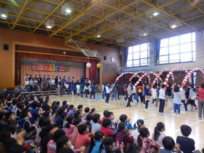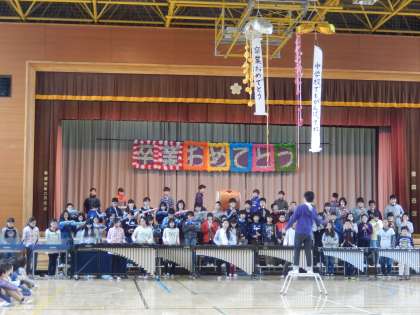 本日体育館で、「6年生を送る会」が行われました。1年生から5年生、つくし学級が、様々な出し物やプレゼントを用意し、6年生への今までの感謝の気持ちを伝えることができました。また、代表委員会の企画で、6年生全員へ色紙のプレゼントも渡しました。最後は6年生がお返しとして「八木節」の合奏をしてくれました。6年生がいる残りの期間を大切に過ごしていきたいと思います。