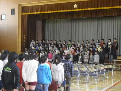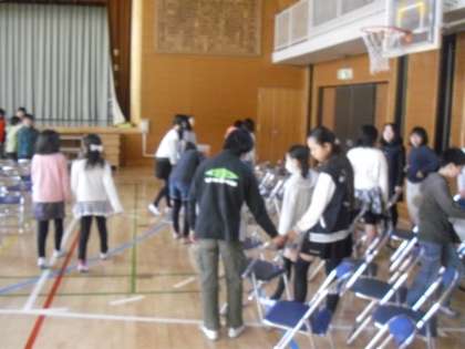 3/13 5年生 卒業式の会場準備 5、6年生合同練習の様子