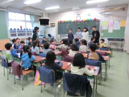 教室でも6年生が、朝の支度やトイレの利用の仕方など、優しく丁寧に教えていました。1年生も安心して学校生活2日目をスタートさせていました。