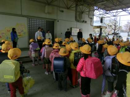 今日の4時間の学習と生活を終え、下校の支度をしてピロティに集合しました。