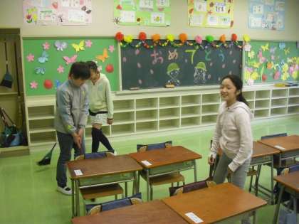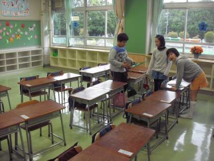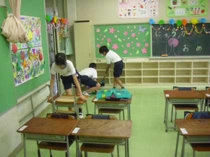 1年生の下校後、6年生が1年生の教室を清掃しました。