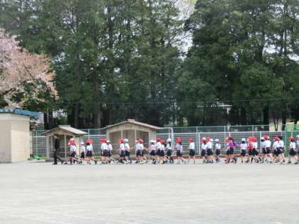 学級編制替えがあった3年生。天気も回復し、体育の学習を校庭で行っていました。