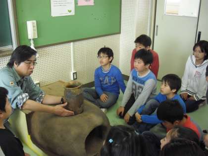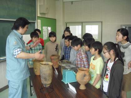 縄文土器と弥生土器、さらに古墳時代の土器を比較したり、打製石器、磨製石器の用途を学んだりして、当時の生活を想像することができました。